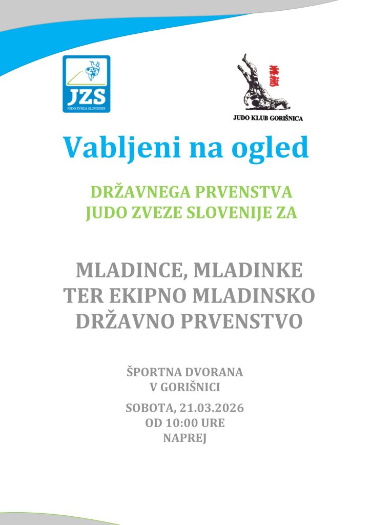DRŽAVNO PRVENSTVO JUDO ZVEZE SLOVENIJE ZA MLADINCE, MLADINKE TER EKIPNO MLADINSKO DRŽAVNO PRVENSTVO